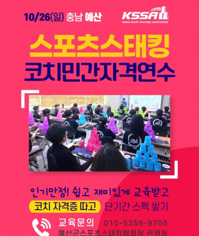 [대전] 제188기 스포츠스태킹 코치 민간자격연수