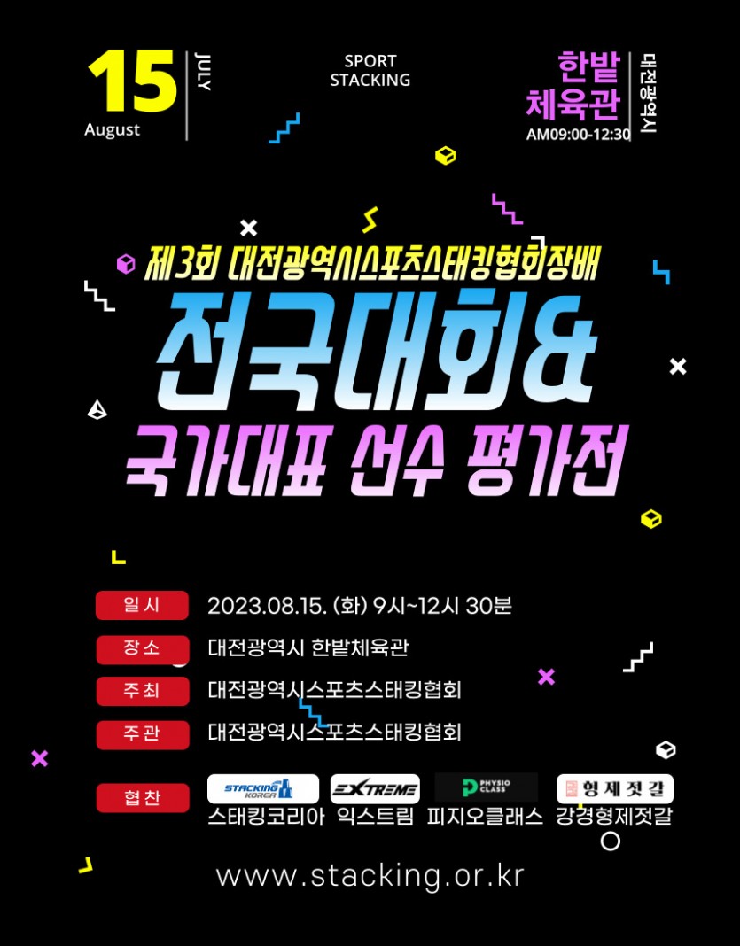 대회안내 제3회 대전광역시스포츠스태킹협회장배 전국대회&국가대표 선수 평가전