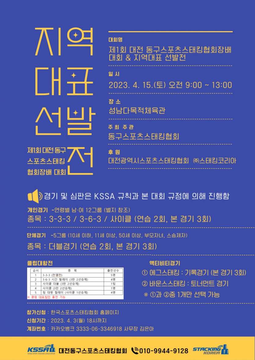 대회안내 제1회 대전 동구스포츠스태킹협회장배 대회& 지역대표 선발전