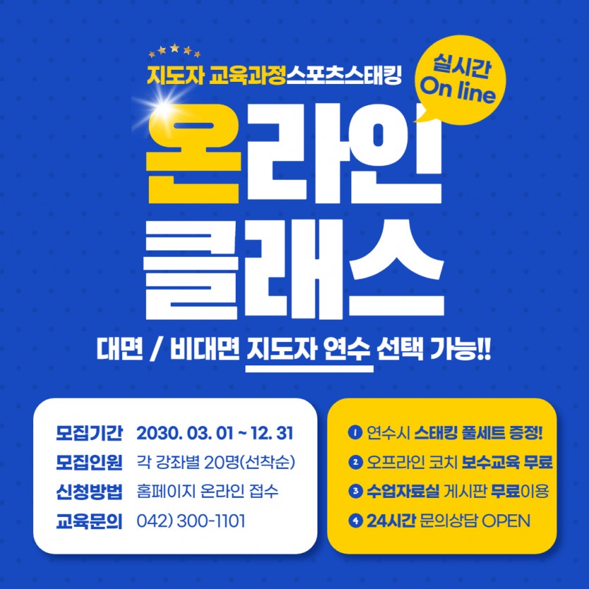 코로나로 인해 온라인 지도자 연수를 실시합니다.